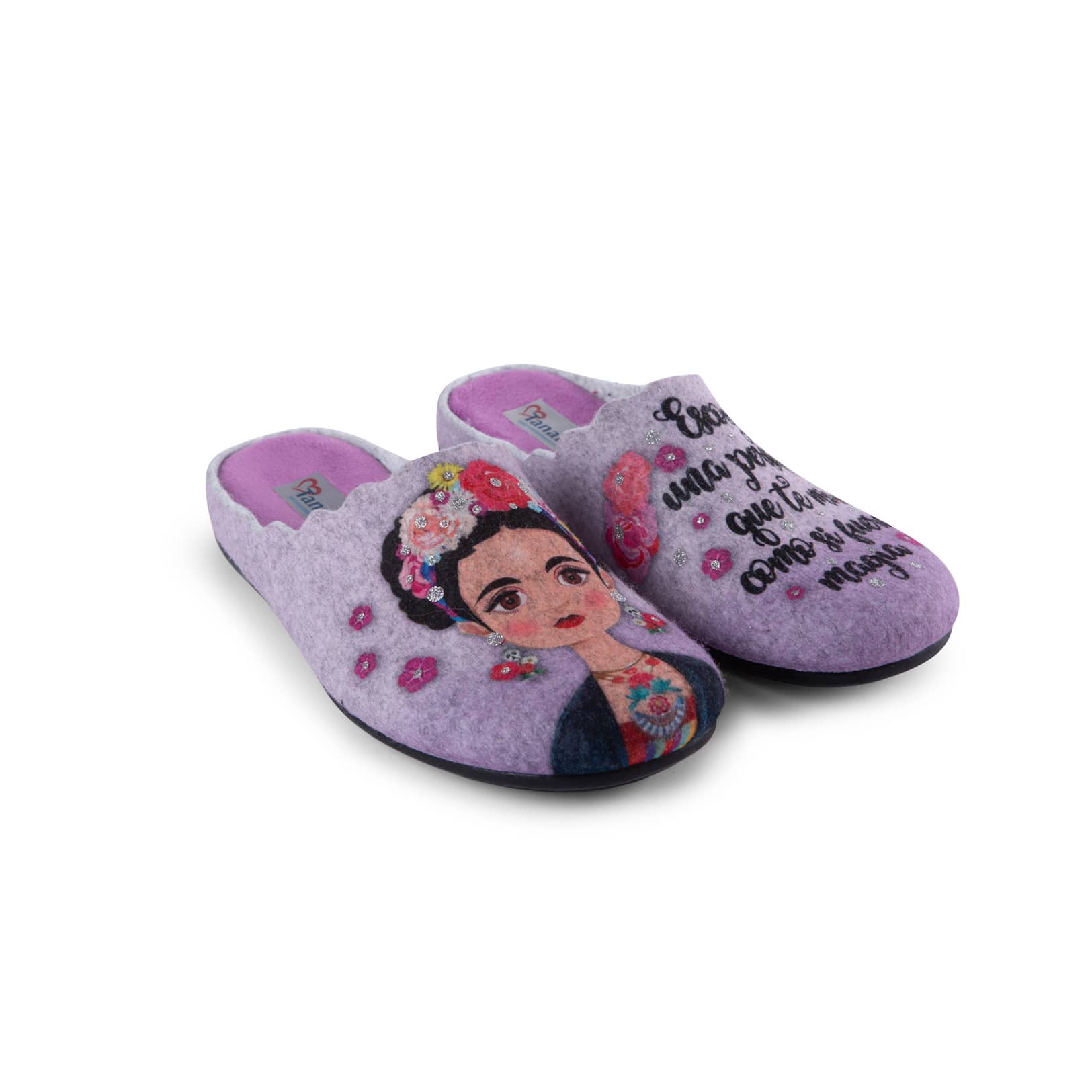 Damen Hausschuhe aus Filz Frau mit Blumen