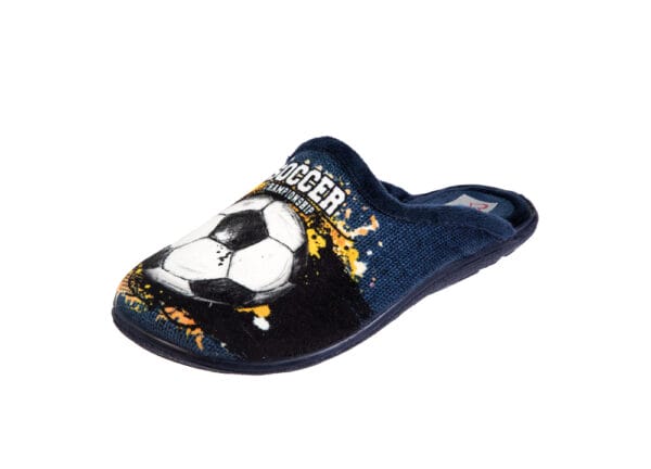 Flyke boy slipper mule with Soccer print