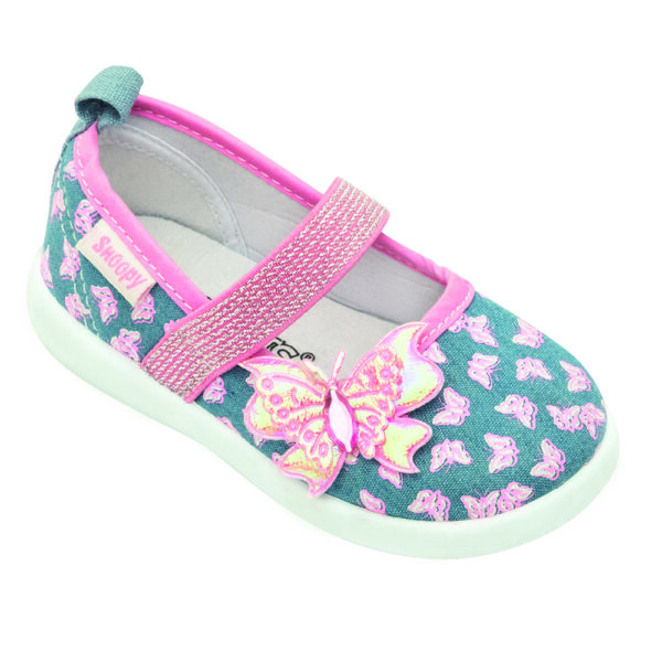 Ballerine fille Snoopy en denim avec papillon et élastique pailleté