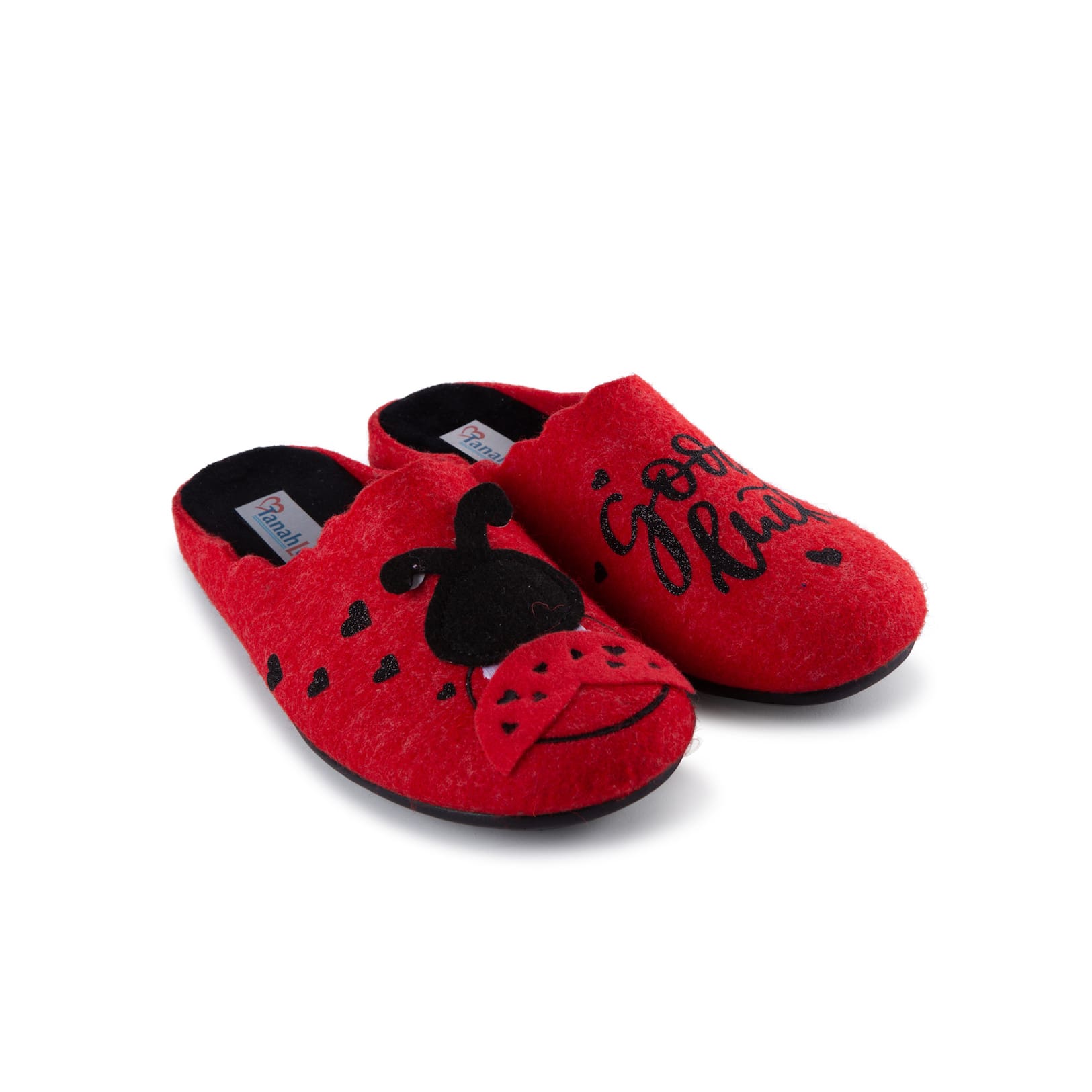 Ciabatta donna Tanahlot in feltro applicazione coccinella Good Luck