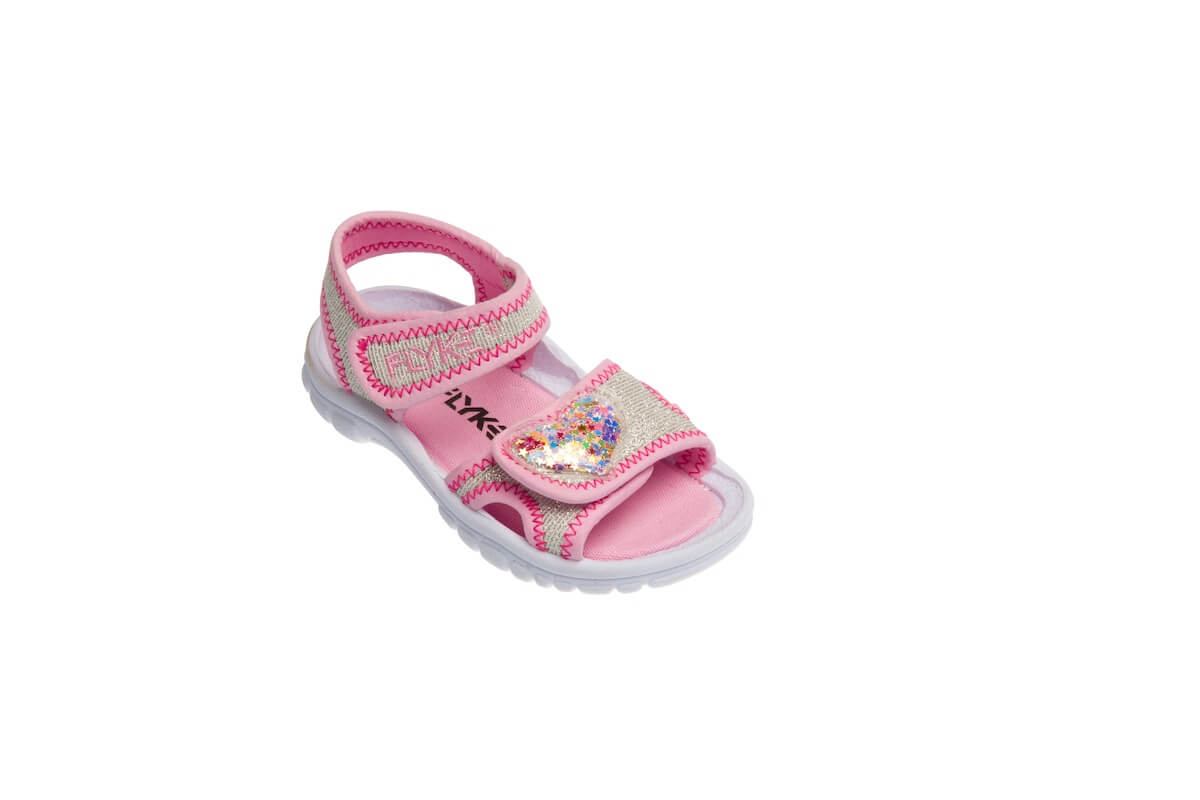 Sandalo bimba Flyke in tela metal cuore con paillettes