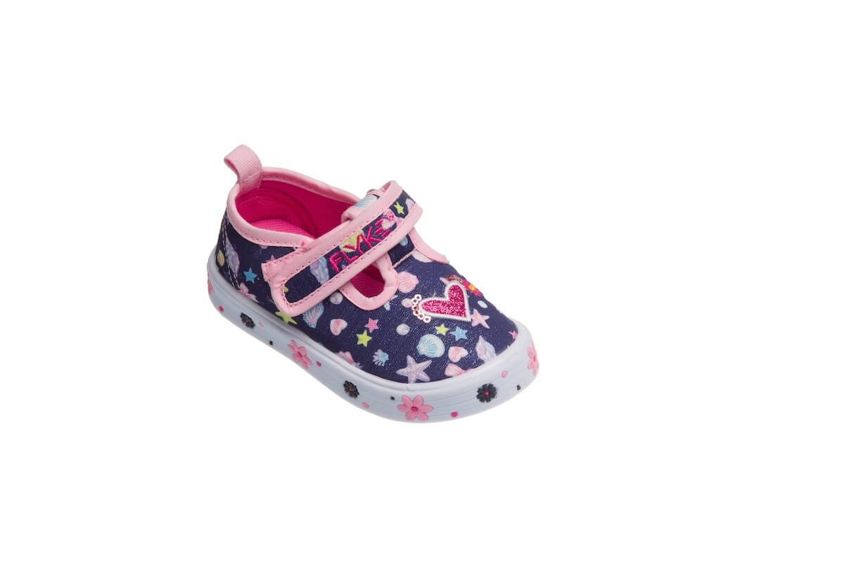 Scarpa bimba Flyke in tela stampa conchiglie con velcro