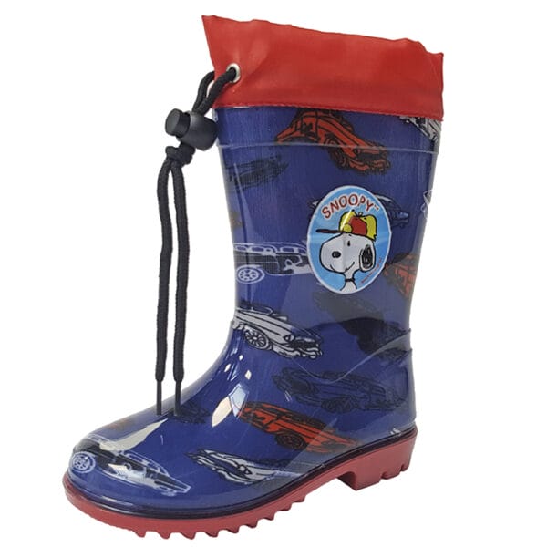Stivale pioggia bambino Snoopy con collarino stampa macchine